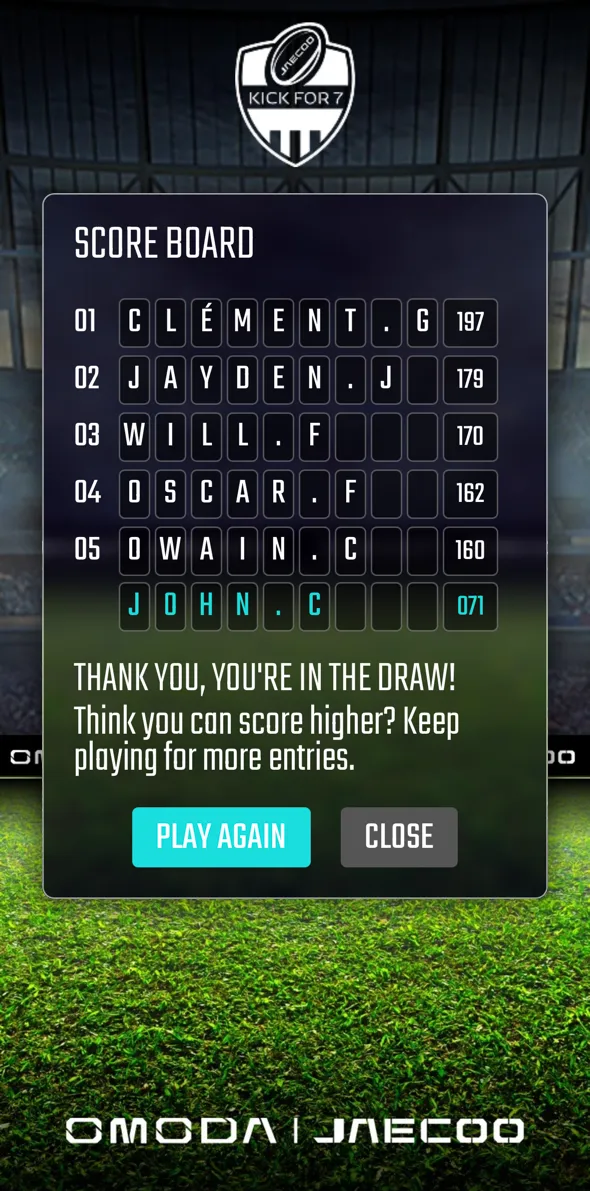 To support its UK market launch and maximise sponsorship of the 2025 European Rugby Championships, Omoda Jaecoo needed a standout fan experience that could cut through the noise of a crowded live event environment. With low brand familiarity in the market, the objective was to capture attention, drive participation, and create meaningful brand interaction during peak match-day moments.